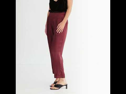 Made from our luxurious 100% sustainable silk, this pair of relaxed fit trouser pants feature side pockets, one jet back pocket, an elasticated self covered back waist band and cuffed hems.