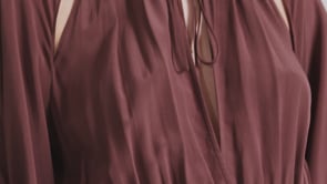 The Dress features billowy balloon sleeves, a flattering plunging neck with long ribbon neck ties, raglan keyholes and shirring at the hips to accentuate the hourglass figure. The long maxi dress is finished with the signature Osiris lace and accordion pleating at the hem.